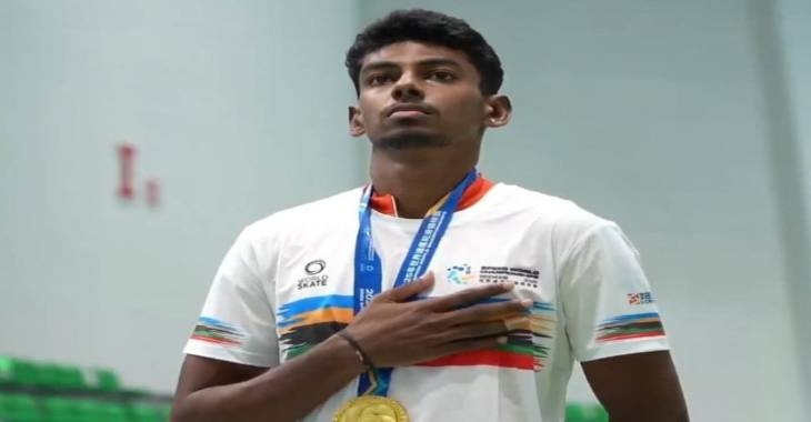 India’s first-ever gold medal at the Speed Skating World Championships in China was won by Anandkumar Velkumar.